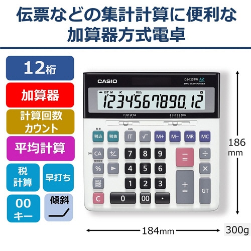 カシオ ビジネス電卓 12桁 デスクタイプ DS-120TW 1台(ご注文単位1台)【直送品】