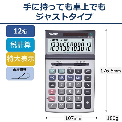 カシオ 本格実務電卓 12桁 ジャストタイプ JS-200W-N 3台/セット(ご注文単位1セット)【直送品】