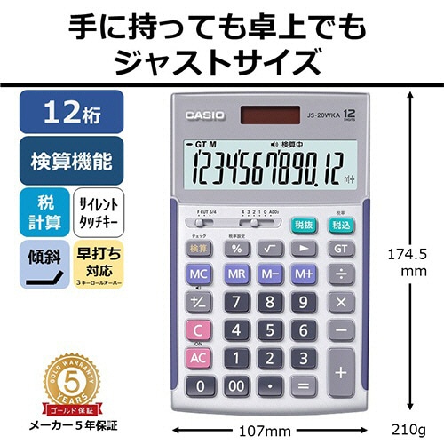 カシオ 本格実務電卓 12桁 ジャストタイプ シルバー JS-20WKA-SR-N 1台(ご注文単位1台)【直送品】