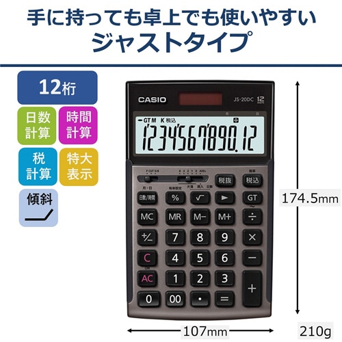 カシオ 本格実務電卓 日数&時間計算 12桁 ジャストタイプ グレージュブラウン JS-20DC-GB-N 1台(ご注文単位1台)【直送品】