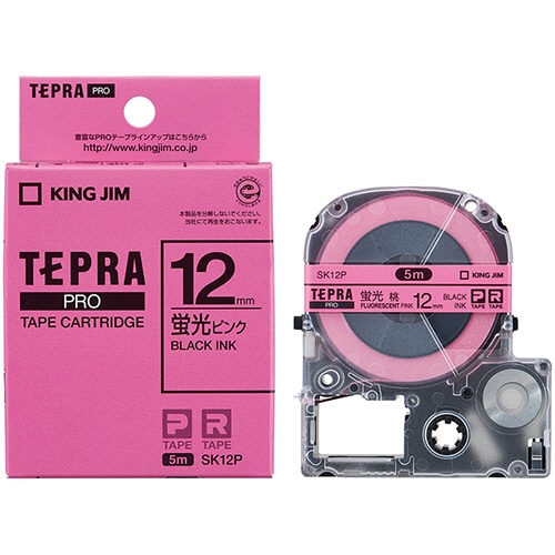 キングジム テプラ PRO テープカートリッジ 12mm 蛍光ピンク/黒文字 SK12P 1個(ご注文単位1個)【直送品】