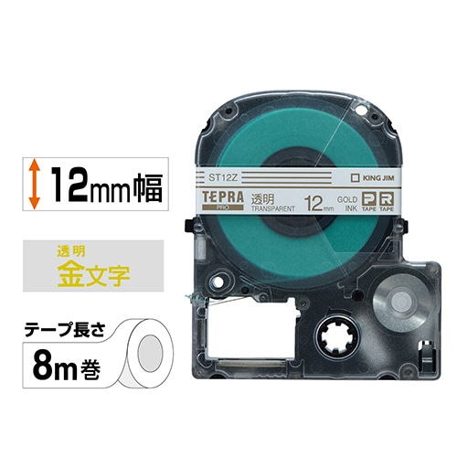 - ●KING JIM テプラPROシリーズ 専用カートリッジ●色/透明(金文字)●仕様/12mm幅×8m巻●透明ラベル