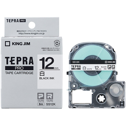 キングジム テプラ PRO テープカートリッジ 12mm 白/黒文字 SS12K 1個(ご注文単位1個)【直送品】