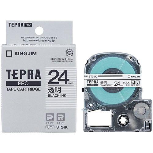 キングジム テプラ PRO テープカートリッジ 24mm 透明/黒文字 ST24K 1個(ご注文単位1個)【直送品】