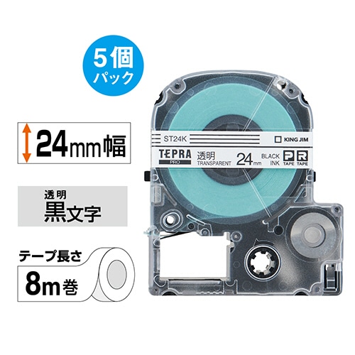 キングジム テプラ PRO テープカートリッジ 24mm 透明/黒文字 ST24K-5P 5個/袋(ご注文単位1袋)【直送品】