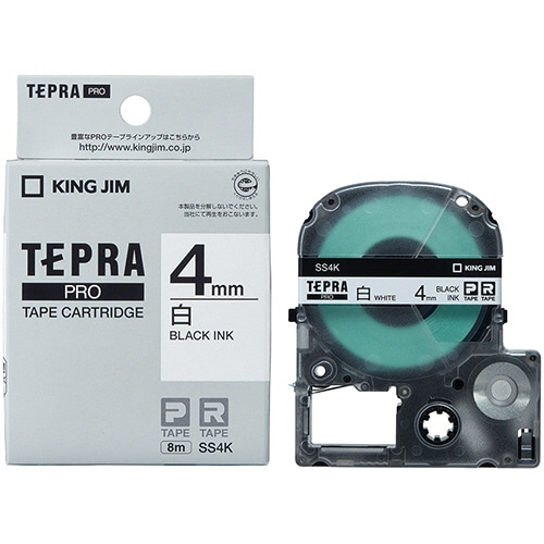 キングジム テプラ PRO テープカートリッジ 4mm 白/黒文字 SS4K 1個(ご注文単位1個)【直送品】