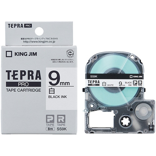 キングジム テプラ PRO テープカートリッジ 9mm 白/黒文字 SS9K 1個(ご注文単位1個)【直送品】