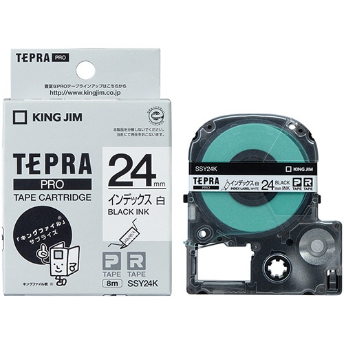 キングジム テプラ PRO テープカートリッジ インデックスラベル 24mm 白/黒文字 SSY24K 1個(ご注文単位1個)【直送品】