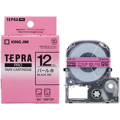 キングジム テプラ PRO テープカートリッジ カラーラベル(パール) 12mm 赤/黒文字 SMP12R 1個(ご注文単位1個)【直送品】