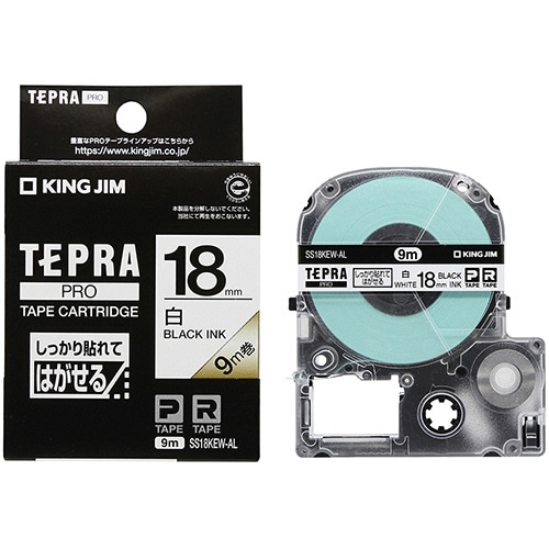 キングジム テプラ PRO テープカートリッジ しっかり貼れてはがせるラベル 18mm 白/黒文字 SS18KEW-AL 1個(ご注文単位1個)【直送品】