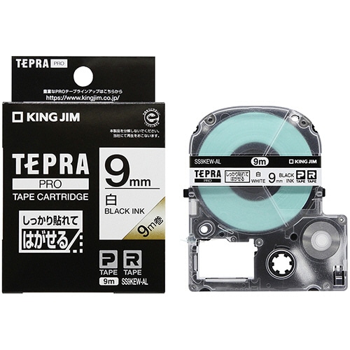 キングジム テプラ PRO テープカートリッジ しっかり貼れてはがせるラベル 9mm 白/黒文字 SS9KEW-AL 1個(ご注文単位1個)【直送品】