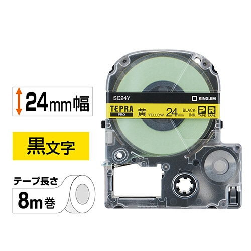 キングジム テプラ PRO テープカートリッジ パステル 24mm 黄/黒文字 SC24Y 1個(ご注文単位1個)【直送品】