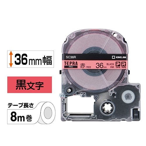 キングジム テプラ PRO テープカートリッジ パステル 36mm 赤/黒文字 SC36R 1個(ご注文単位1個)【直送品】