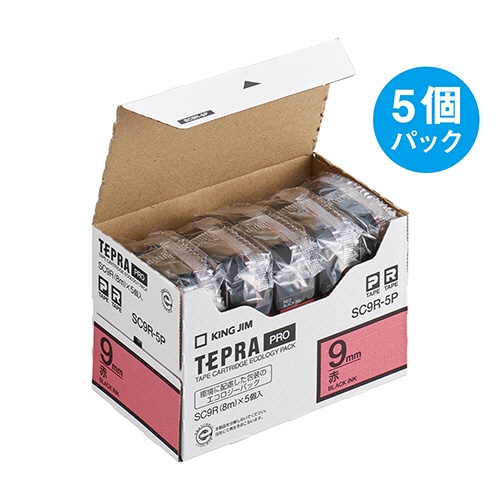 キングジム テプラ PRO テープカートリッジ パステル 9mm 赤/黒文字 エコパック SC9R-5P 5個/袋(ご注文単位1袋)【直送品】