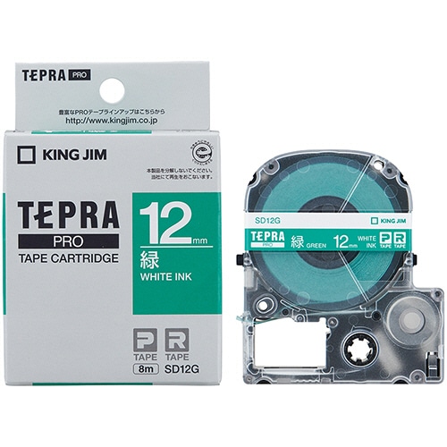 キングジム テプラ PRO テープカートリッジ ビビッド 12mm 緑/白文字 SD12G 1個(ご注文単位1個)【直送品】