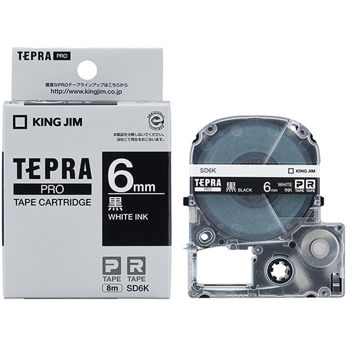 - ●KING JIM テプラPROシリーズ 専用カートリッジ●色/黒(白文字)●仕様/6mm幅×8m巻●ビビッドカラーのラベルに白抜き文字くっきり