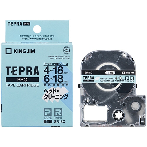 ●KING JIM テプラPROシリーズ 専用カートリッジ●仕様/18mm幅×4m巻●ヘッド・クリーニングテープは薄い素材で作られています。新品でも少なめにみえますが、約120回のクリーニングが可能です。●このヘッド・クリーニングテープは、「テプラ」PROシリーズ専用です。対応機種以外には使用しないでください。●テープは巻き取り式になっていますので、「テープカット」は不要です。●クリーニングをおこなっても印刷が欠けたりかすれたりする場合、本体の故障が考えられます。●このテープカートリッジで印刷をおこなわないでください。印刷をおこなうとヘッドをいためる原因になります。