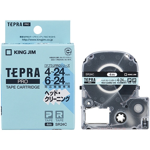 ●KING JIM テプラPROシリーズ 専用カートリッジ●仕様/24mm幅×4m巻●ヘッド・クリーニングテープは薄い素材で作られています。新品でも少なめにみえますが、約120回のクリーニングが可能です。●このヘッド・クリーニングテープは、「テプラ」PROシリーズ専用です。対応機種以外には使用しないでください。●テープは巻き取り式になっていますので、「テープカット」は不要です。●クリーニングをおこなっても印刷が欠けたりかすれたりする場合、本体の故障が考えられます。●このテープカートリッジで印刷をおこなわないでください。印刷をおこなうとヘッドをいためる原因になります。