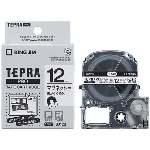 キングジム テプラ PRO テープカートリッジ マグネットテープ 12mm 白/黒文字 SJ12S 1個(ご注文単位1個)【直送品】