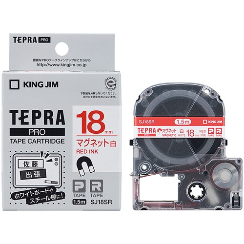 キングジム テプラ PRO テープカートリッジ マグネットテープ 18mm 白/赤文字 SJ18SR 1個(ご注文単位1個)【直送品】