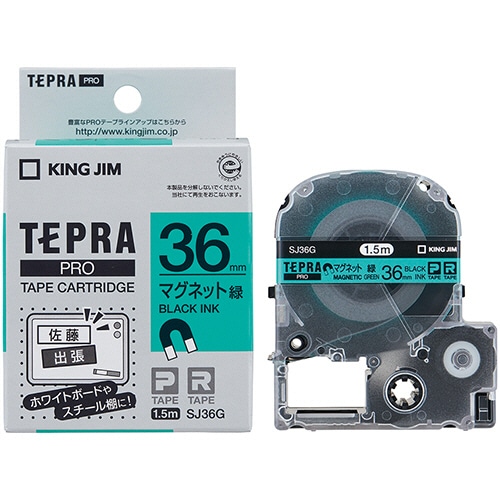 キングジム テプラ PRO テープカートリッジ マグネットテープ 36mm 緑/黒文字 SJ36G 1個(ご注文単位1個)【直送品】