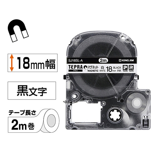 キングジム テプラ PRO テープカートリッジ マグネットテープ ロングタイプ2m巻 18mm 白/黒文字 SJ18SL-A 3個/セット(ご注文単位1セット)【直送品】