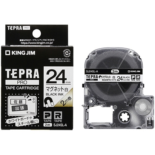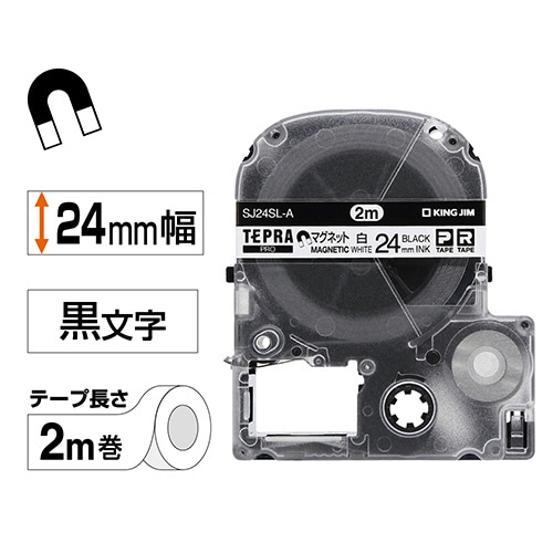 キングジム テプラ PRO テープカートリッジ マグネットテープ ロングタイプ2m巻 24mm 白/黒文字 SJ24SL-A 3個/セット(ご注文単位1セット)【直送品】