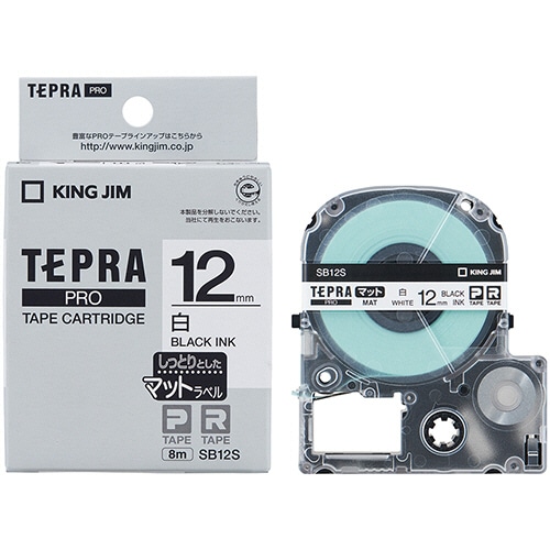 キングジム テプラ PRO テープカートリッジ マットラベル 12mm 白/黒文字 SB12S 1個(ご注文単位1個)【直送品】