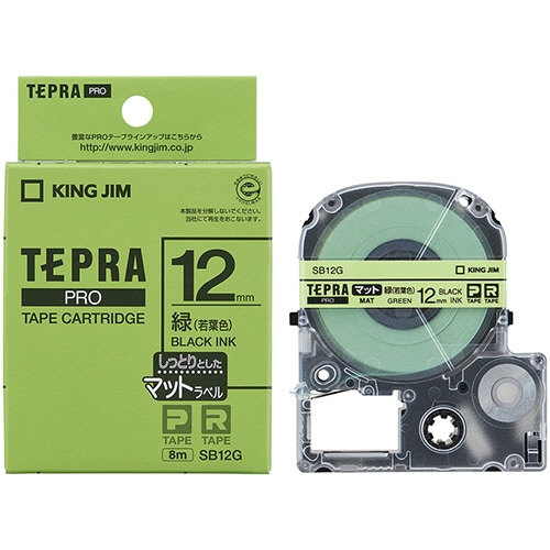 キングジム テプラ PRO テープカートリッジ マットラベル 12mm 緑(若葉色)/黒文字 SB12G 1個(ご注文単位1個)【直送品】