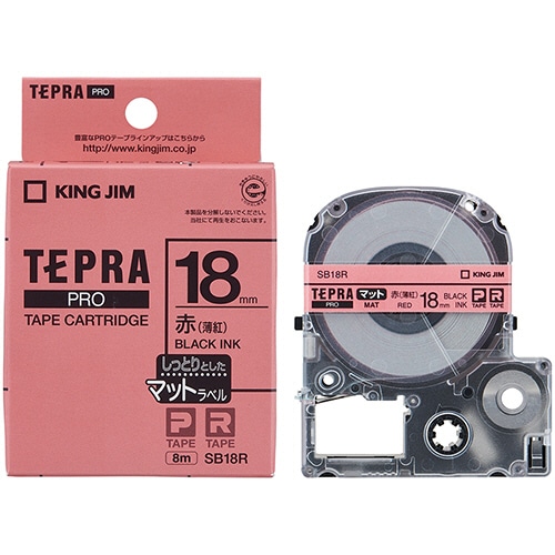 キングジム テプラ PRO テープカートリッジ マットラベル 18mm 赤(薄紅)/黒文字 SB18R 1個(ご注文単位1個)【直送品】