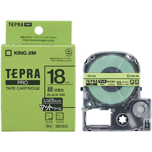キングジム テプラ PRO テープカートリッジ マットラベル 18mm 緑(若葉色)/黒文字 SB18G 1個(ご注文単位1個)【直送品】