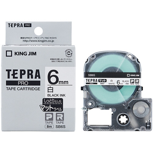 キングジム テプラ PRO テープカートリッジ マットラベル 6mm 白/黒文字 SB6S 1個(ご注文単位1個)【直送品】