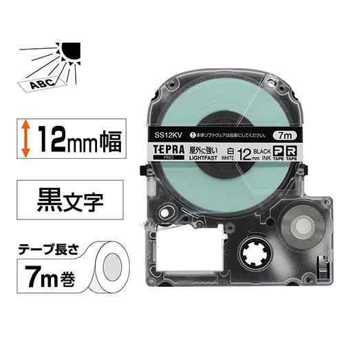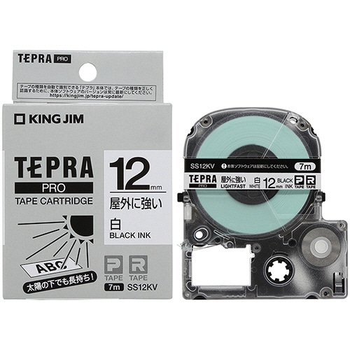キングジム テプラ PRO テープカートリッジ 屋外に強いラベル 12mm 白/黒文字 SS12KV 1個(ご注文単位1個)【直送品】