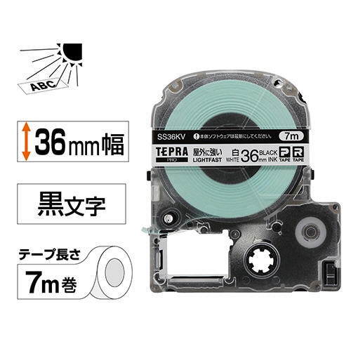 キングジム テプラ PRO テープカートリッジ 屋外に強いラベル 36mm 白/黒文字 SS36KV 1個(ご注文単位1個)【直送品】