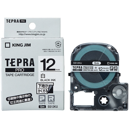 キングジム テプラ PRO テープカートリッジ 下地がかくせるラベル 12mm 白/黒文字 SS12KU 1個(ご注文単位1個)【直送品】