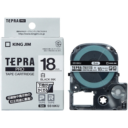 キングジム テプラ PRO テープカートリッジ 下地がかくせるラベル 18mm 白/黒文字 SS18KU 1個(ご注文単位1個)【直送品】