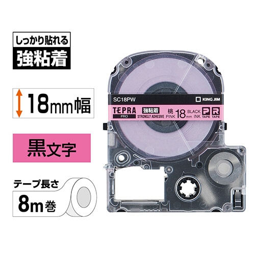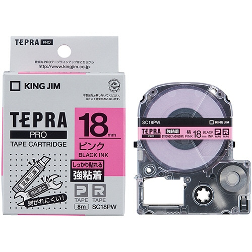 キングジム テプラ PRO テープカートリッジ 強粘着 18mm ピンク/黒文字 SC18PW 1個(ご注文単位1個)【直送品】