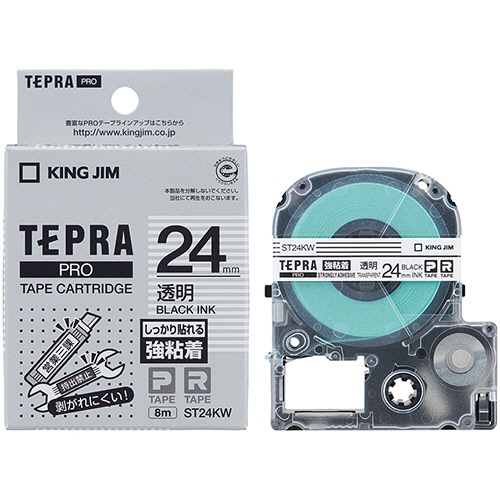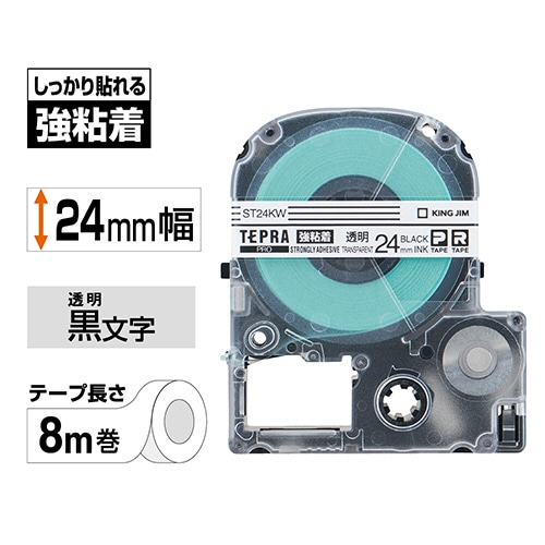 キングジム テプラ PRO テープカートリッジ 強粘着 24mm 透明/黒文字 ST24KW 1個(ご注文単位1個)【直送品】