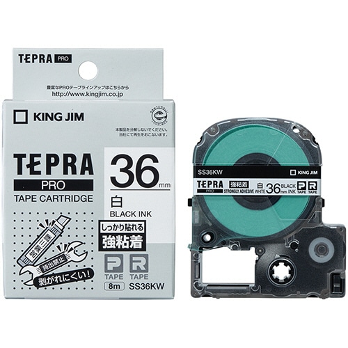 キングジム テプラ PRO テープカートリッジ 強粘着 36mm 白/黒文字 SS36KW 1個(ご注文単位1個)【直送品】