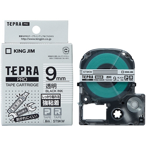キングジム テプラ PRO テープカートリッジ 強粘着 9mm 透明/黒文字 ST9KW 1個(ご注文単位1個)【直送品】