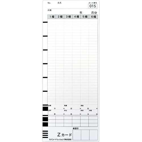 セイコーソリューションズ セイコー用片面タイムカード 全締日対応 片面6欄印字 CA-Z 100枚/袋(ご注文単位1袋)【直送品】