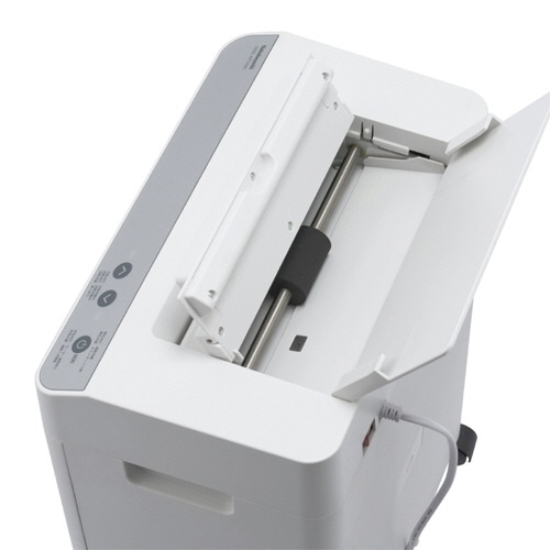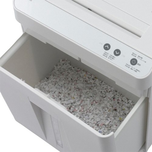 - ●紙を置くだけで自動細断できる静音オートフィードシュレッダ。●サイズ/A4●寸法/W350×D220×H450mm●重量/8kg●色/ホワイト●カット形状/標準カット●投入幅/紙:225mm(A4)●細断サイズ/4×12mm●最大細断枚数/A4約60枚(手差し時7枚)●定格細断枚数/60枚●細断速度/約2.1m/分(50Hz)●連続運転時間/15分●オートフィード/対応●機能/入れ過ぎ時:オートリバース●裁断可能物/ホッチキス(11号まで、手差し時のみ)●ダストボックス容量/17L●ゴミ袋/30L●ダストボックス扉/引き出し式●運転音(50/60Hz)/約53dB●消費電力/110/105W(50/60Hz)●保証期間/1年※運転音は空転時