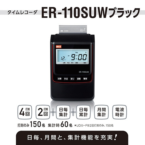 マックス タイムレコーダ ブラック 電波時計付 ER-110SUW 1台(ご注文単位1台)【直送品】