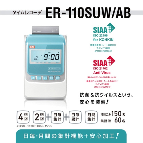 マックス タイムレコーダ 抗菌・抗ウイルス仕様 ホワイト 電波時計付 ER-110SUW/AB 1台(ご注文単位1台)【直送品】