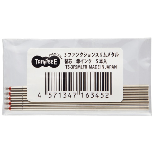 TANOSEE 3ファンクションスリムメタル替芯 0.7mm 赤 5本/袋(ご注文単位1袋)【直送品】