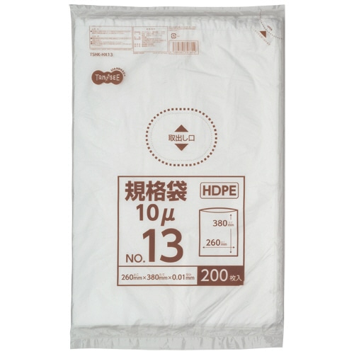 TANOSEE HDPE規格袋 紐なし 13号 ヨコ260×タテ380×厚み0.01mm 200枚/袋(ご注文単位1袋)【直送品】