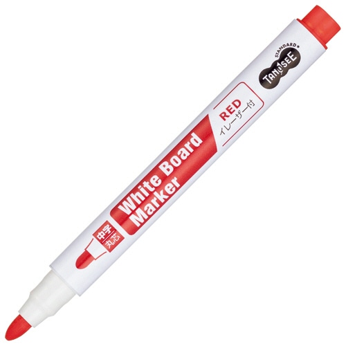 TANOSEE イレーザー付ホワイトボードマーカー 中字・丸芯 赤 10本/セット(ご注文単位1セット)【直送品】