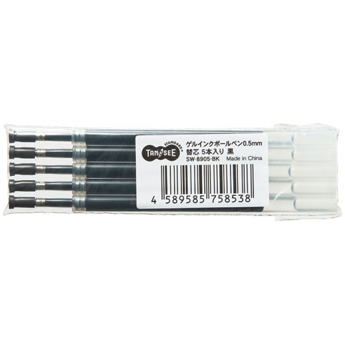 TANOSEE ノック式ゲルインクボールペン替芯 0.5mm 黒 5本/袋(ご注文単位1袋)【直送品】