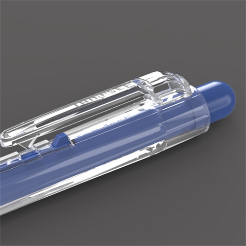 - ●スタンダードタイプの油性ボールペン。●インク種類/油性顔料●インク色/青●軸色/クリア●ボール径/0.7mm●全長/143mm●1パック=10本●インク残量が見えるクリア軸。10本入、インク色は青です。●クリップ先端を押してペン先を収納。●携帯に便利なひも通し穴が付いています。