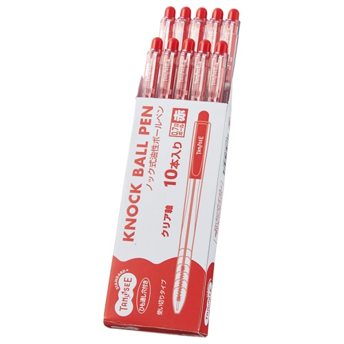 TANOSEE ノック式油性ボールペン 0.7mm 赤 (軸色:クリア) 10本/袋(ご注文単位1袋)【直送品】